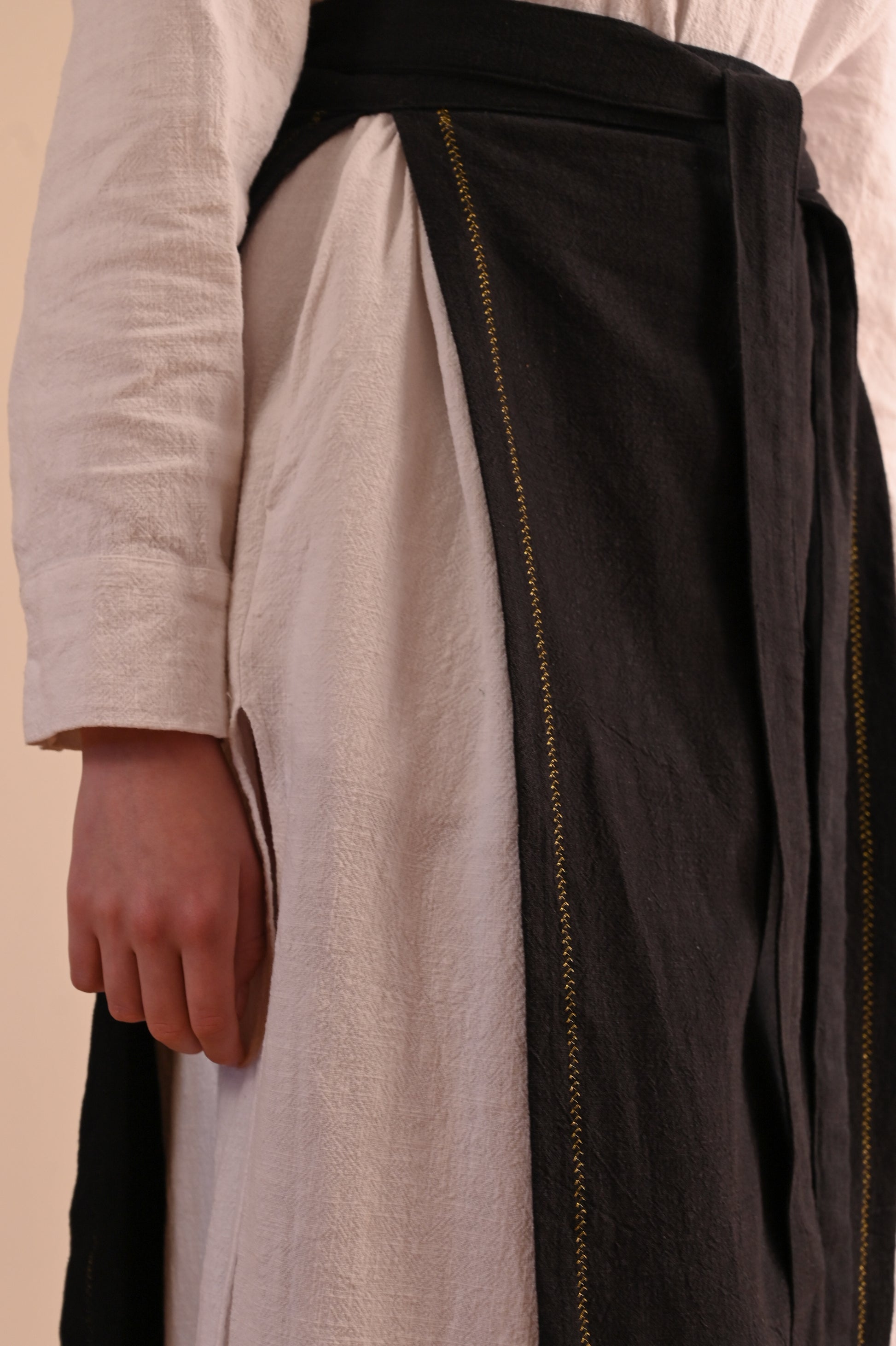 Ramie overskirt - a multifunctional overskirt inspired by Scandinavian traditions and the magical world of "Wild Swans." This garment reflects the heroine's journey through the forest, combining simplicity and sophistication.