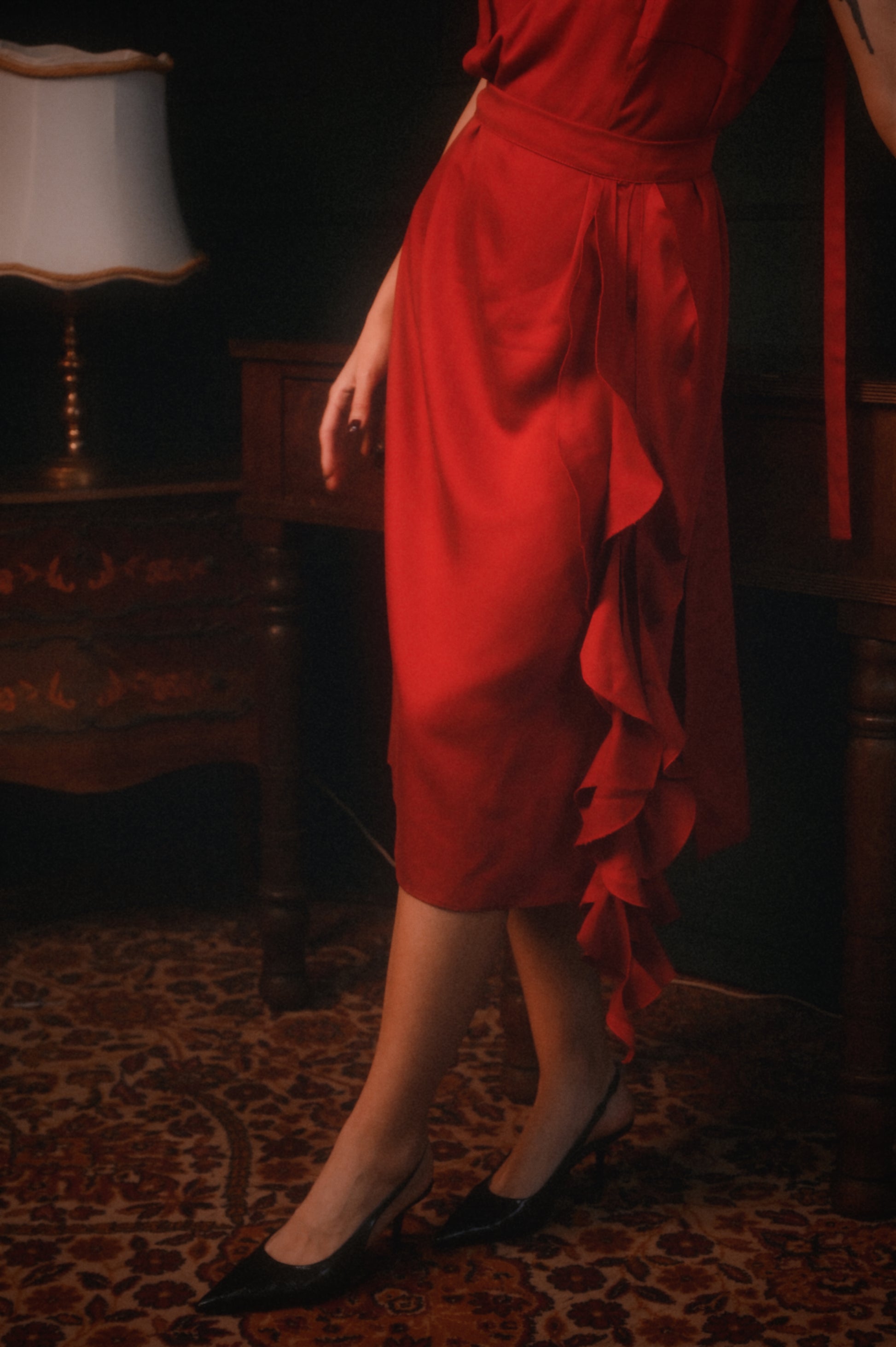 Meet your new party essential! This charming ruffle belt features three flowing ruffles that instantly add a playful pop to any outfit. Whether you're dressing up for a celebration or simply want to inject some festive energy into your everyday look, this belt delivers instant joy. Best of all, it's completely plastic-free and zero-waste—so you can feel fabulous knowing you're making a kind choice for the planet.