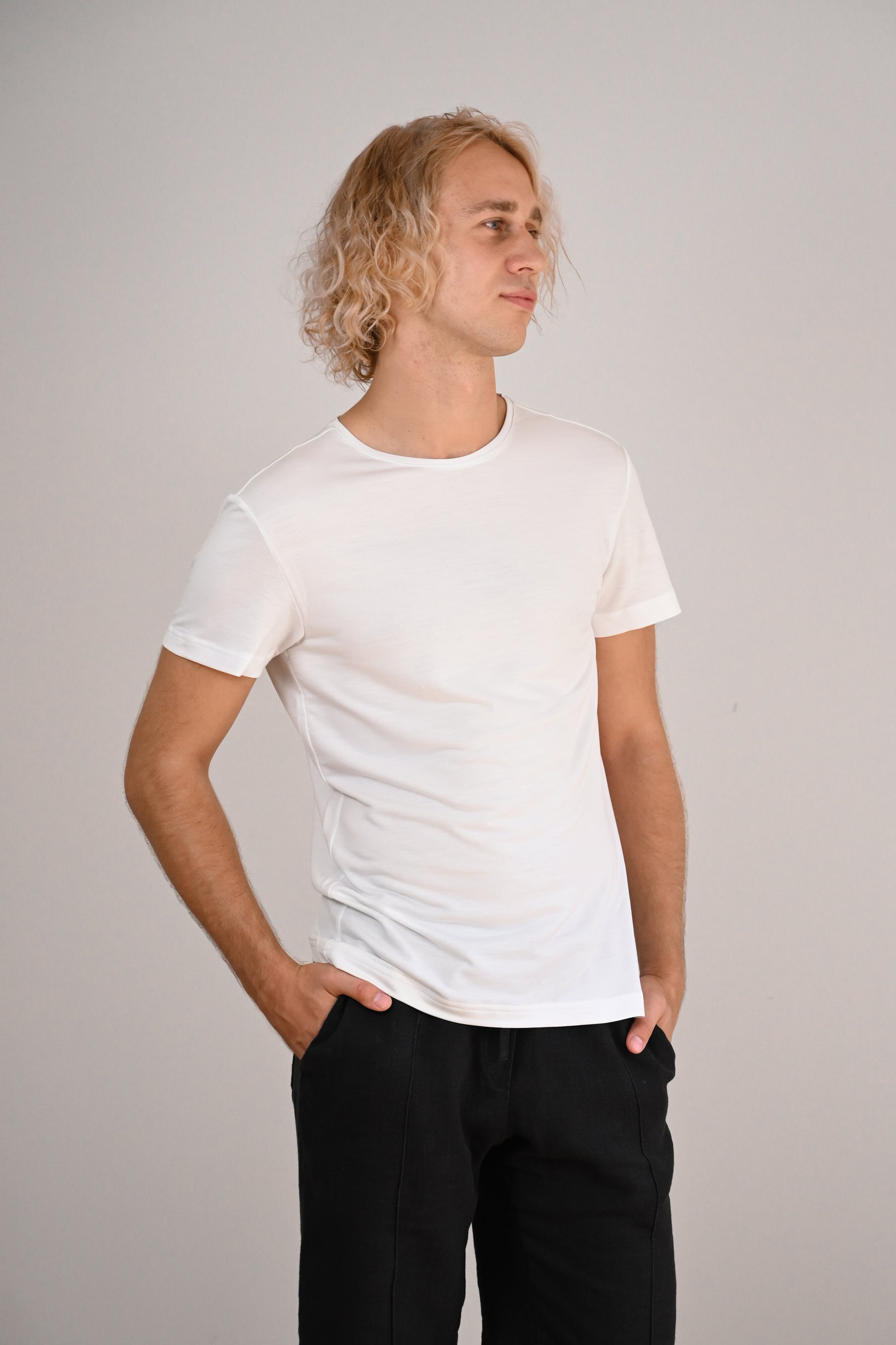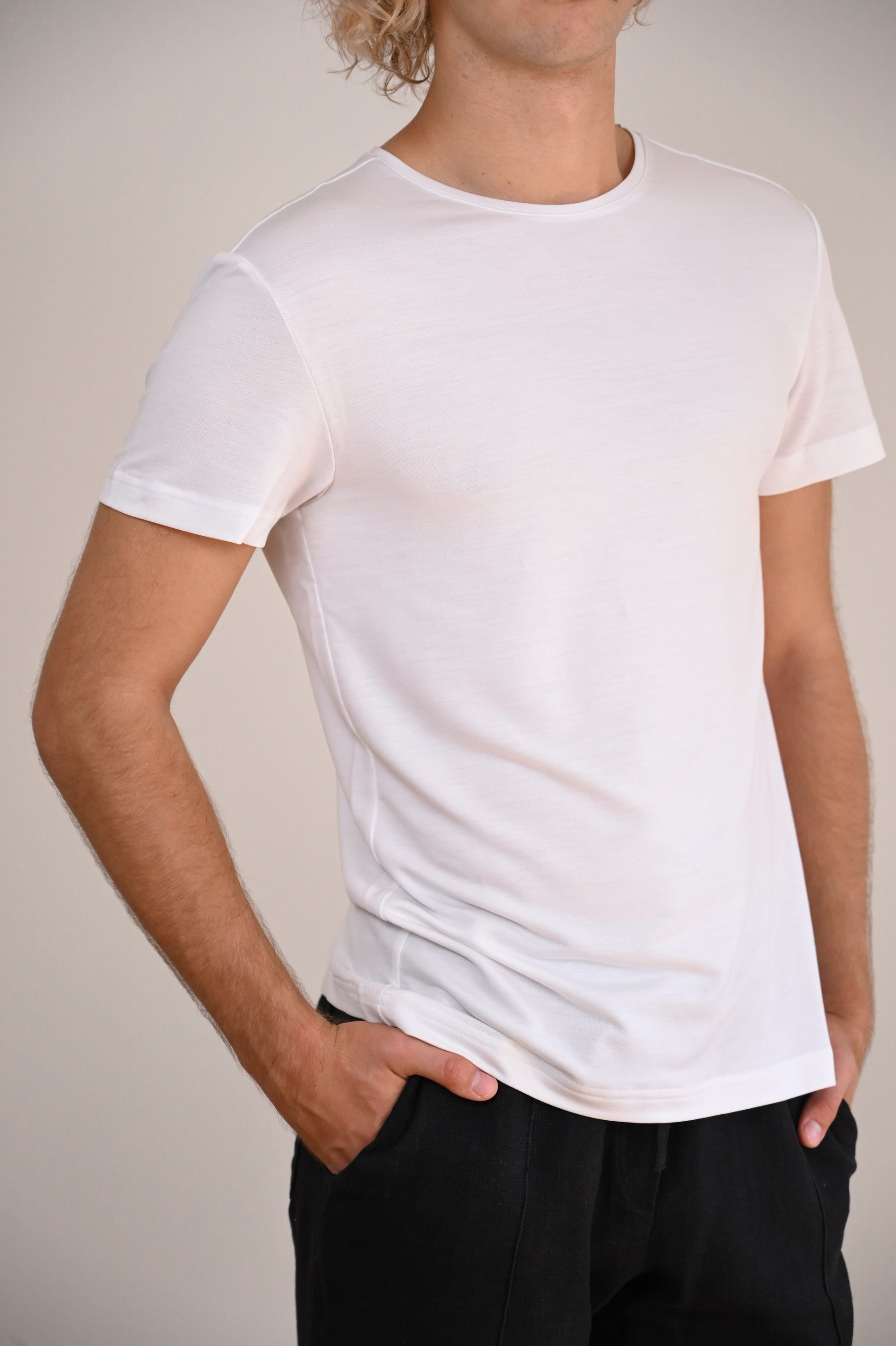 Crafted from 100% Tencel jersey, known for its exceptional softness and eco-friendly production. The fabric's unique properties offer breathability and a luxurious feel against the skin, setting it apart from traditional cotton t-shirts.