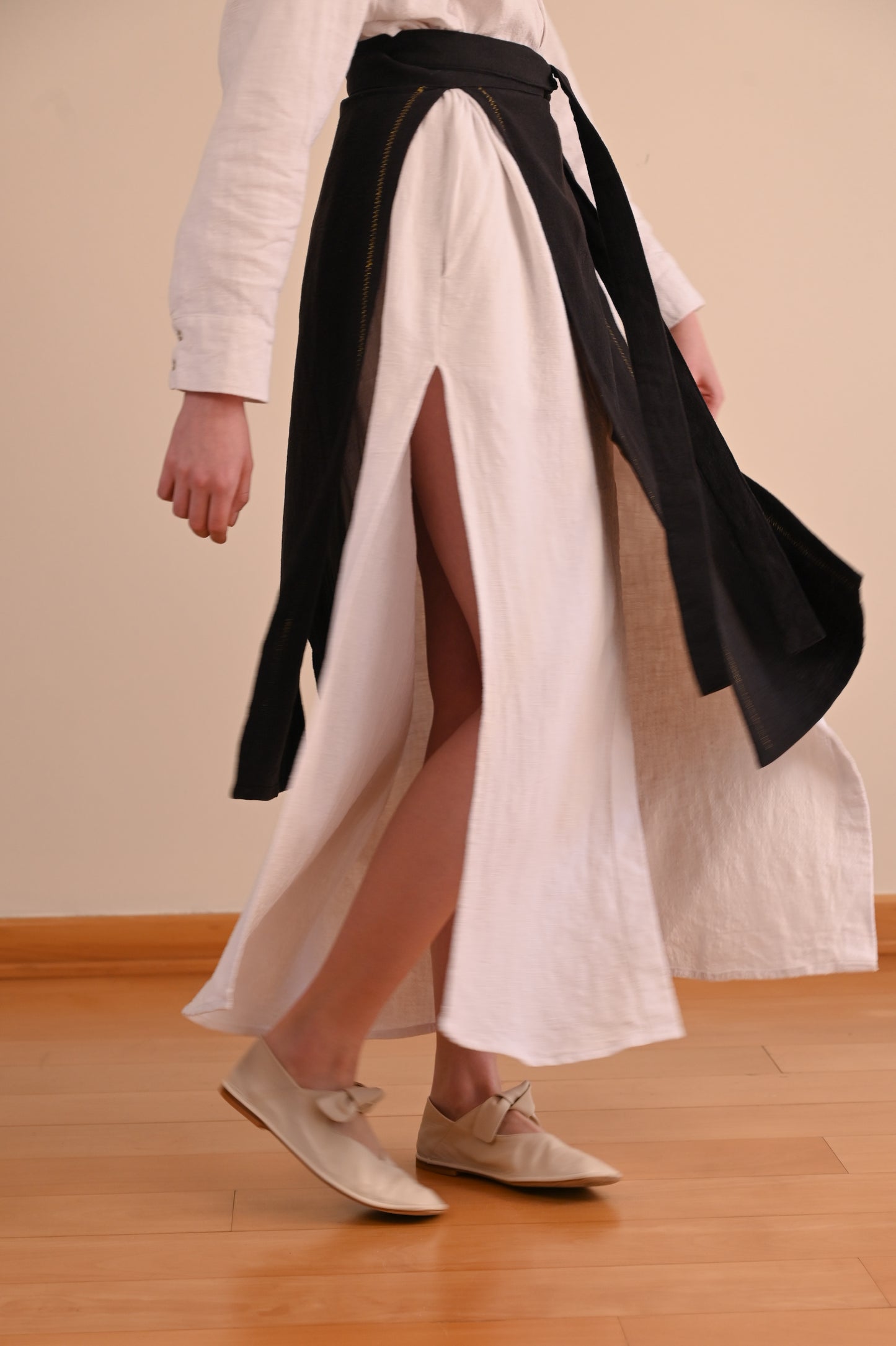 Ramie overskirt - a multifunctional overskirt inspired by Scandinavian traditions and the magical world of "Wild Swans." This garment reflects the heroine's journey through the forest, combining simplicity and sophistication.